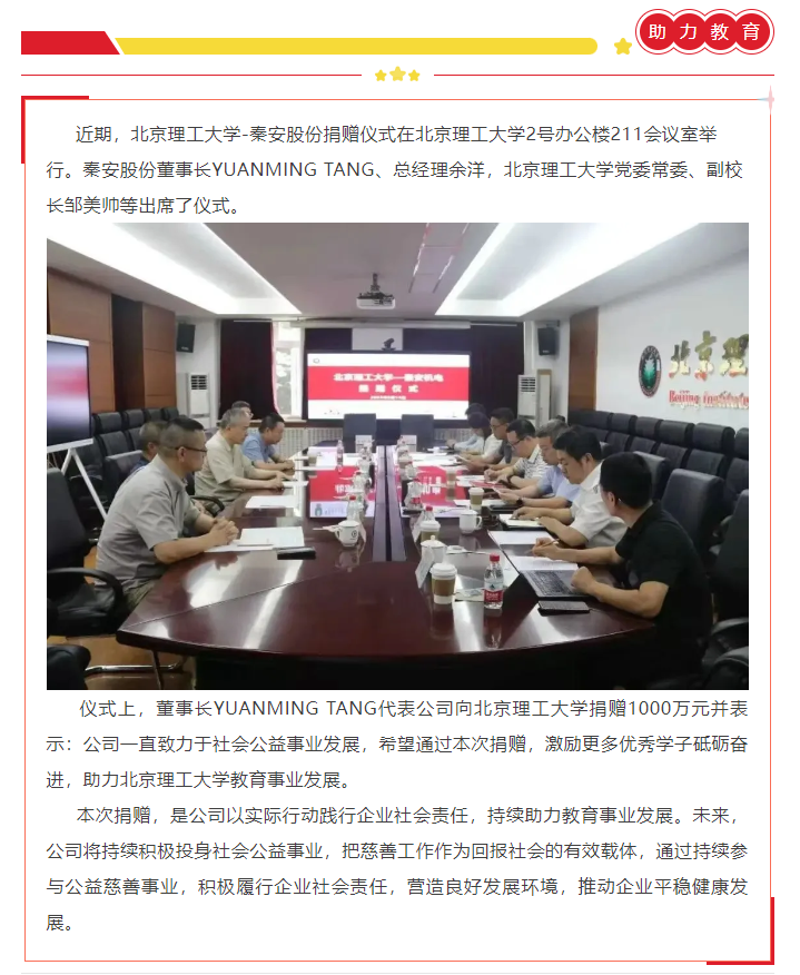 踐行社會(huì)責(zé)任,助力教育發(fā)展——秦安股份向北京理工大學(xué)捐贈(zèng)1000萬元